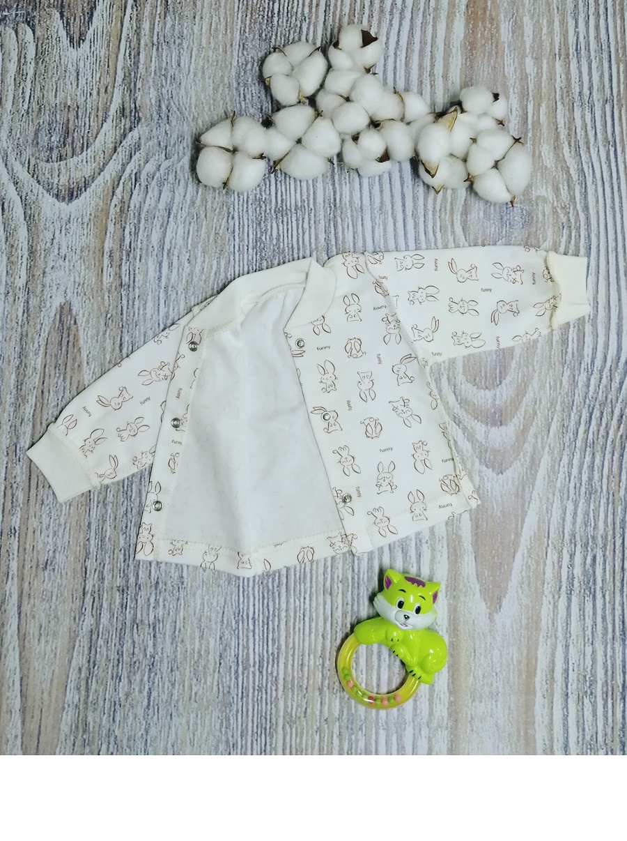 Кофточка без воротника, с длинным рукавом на манжетиках, на кнопочках спереди. Рисунки в каждой партии и упаковке могут отличаться.
