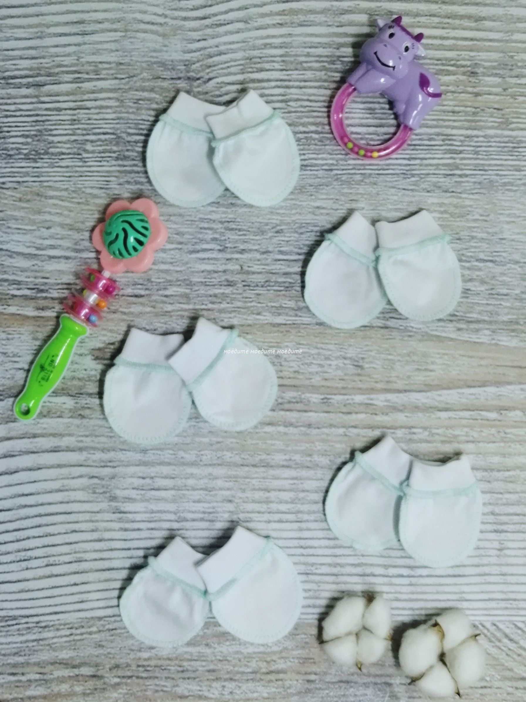 "МоёДитё" царапки кулирка белые + мята ЦК018 "Гардения" в Электростали